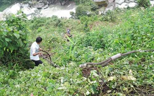 | Lực lượng cứu hộ chuẩn bị dây cáp |