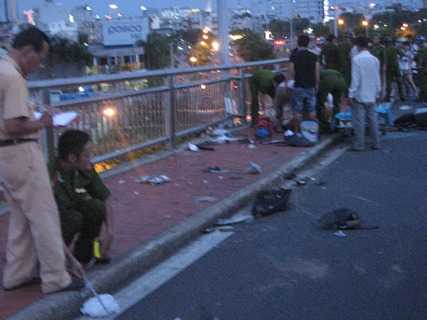 Tại hiện trường, một chiếc xe gắn máy BKS 43K5-2498 do ông Đinh Công Tráng (57 tuổi, trú đường Trần Cao Vân, Đà Nẵng) chở theo sau là vợ Trịnh Thị Thái (54 tuổi) bị chiếc ôtô cán và cuốn vào gầm khiến ông Tráng tử vong tại chỗ, còn bà Thái bị xe tông rơi xuống cầu từ độ cao hơn 30m và tử vong.