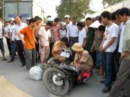 (VTC News) - Chiếc xe máy do một phụ nữ điều khiển đã bị chiếc xe tải húc vào đuôi xe,nạn nhân ngã ra đường và tiếp tục bị chiếc xe trên kéo lê khoảng 5m.