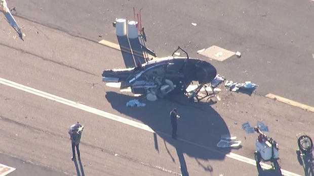 Đoạn video ghi lại hiện trường vụ trực thẳng rơi cho thấy những cột khói đen khổng lồ bốc lên từ nơi máy bay trực thăng rơi và nó bị vỡ thành nhiều mảnh sau tai nạn.