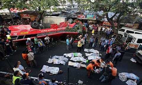 Hãng tin BBC dẫn lời cảnh sát địa phương cho hay, chiếc xe buýt đã trượt khỏi đường cao tốc và rơi trúng một chiếc xe tải bên dưới ở thành phố Paranaque thuộc vùng ngoại ô Manila sáng 16/12 khiến cả 2 tài xế thiệt mạng.