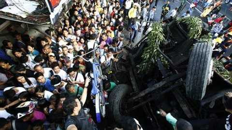 | Hiện trường tai nạn xe buýt kinh hoàng ở Philippines |