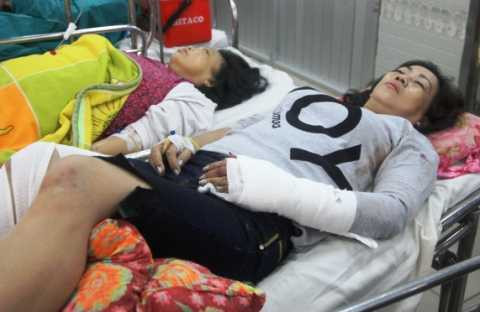 Hai nạn nhân bị thương tích nặng là anh Nguyễn Tấn Khanh (31 tuổi) và ông Nguyễn Sơn Thủy (55 tuổi) bị đa chấn thương, chấn thương sọ não, chấn thương ngực, gãy cẳng chân… đang được hồi sức cấp cứu. Các nạn nhân còn lại nhẹ hơn được chẩn đoán gãy tay, gãy chân và chấn thương đầu, tỉnh táo.