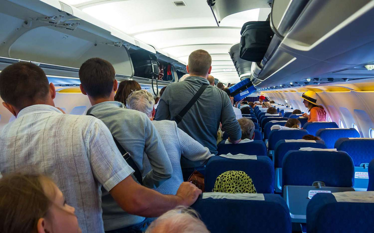 Nhiều hành khách lấy hành lý ngay sau khi máy bay hạ cánh, tuy nhiên họ phải chờ một lúc lâu mới được xuống máy bay. (Ảnh: Travel+Leisure)
