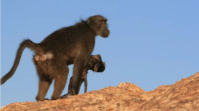 Khỉ đầu chó chacma ôm xác con non trên sa mạc Namib. (Ảnh: Fox News)