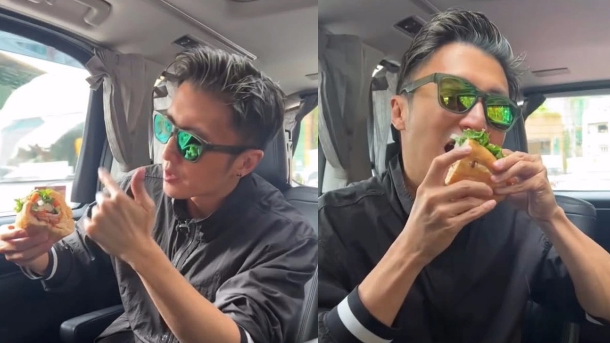 Tạ Đình Phong thích thú trải nghiệm bánh mì Việt Nam.