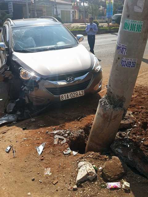 Khi đến trước Công ty Cà phê Vĩnh Hiệp, do tài xế không kiểm soát được tay lái, chiếc xe đã leo lên vỉa hè. Sau khi tông vào cột điện bên đường, chiếc xe quay phắt 90 độ rồi mới dừng lại.