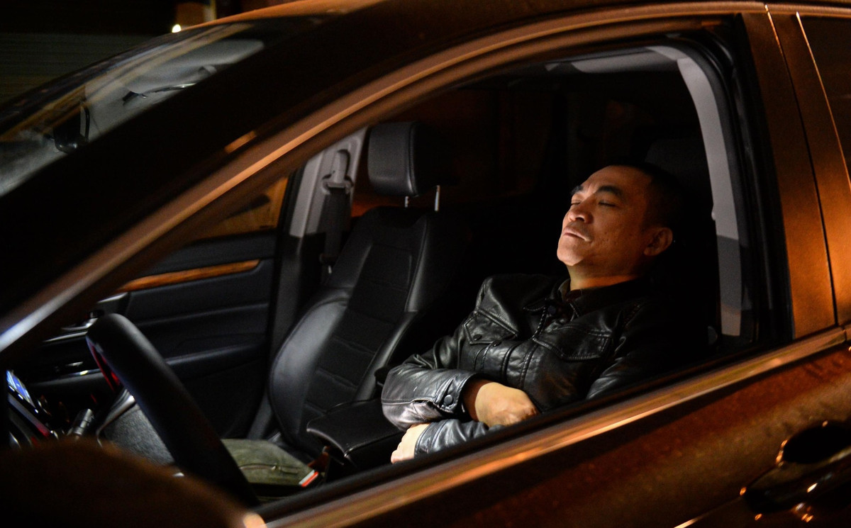 Gương mặt mệt mỏi sau một đêm dài thức trắng của một chủ xe chờ đăng kiểm.