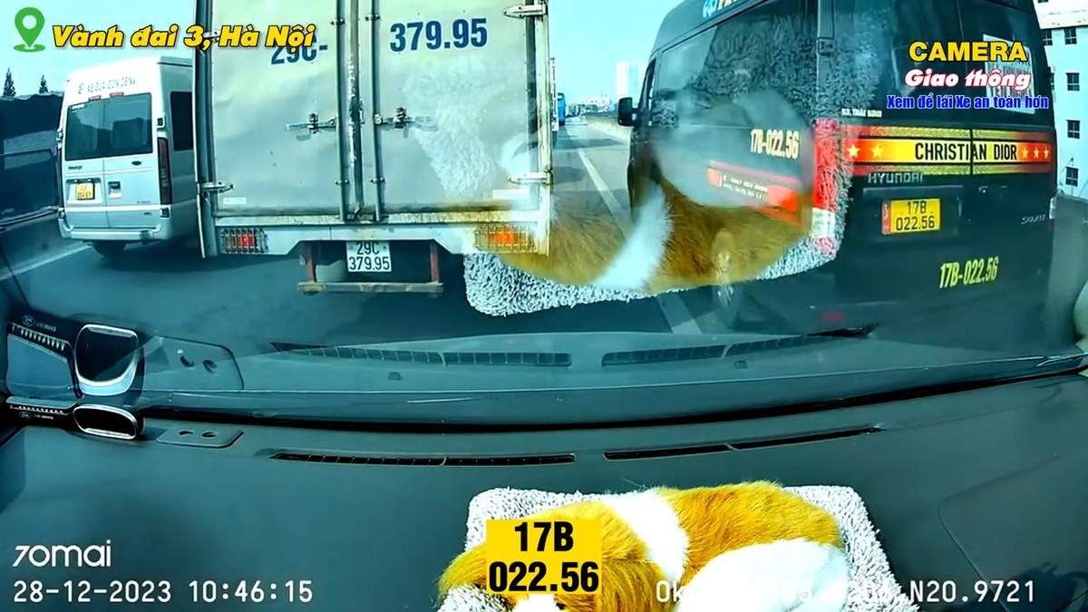 Ngang nhiên di chuyển ở làn khẩn cấp, tài xế xe khách biển số 17B - 022.56 còn quát tháo phương tiện phía trước vì đã không nhường đường.