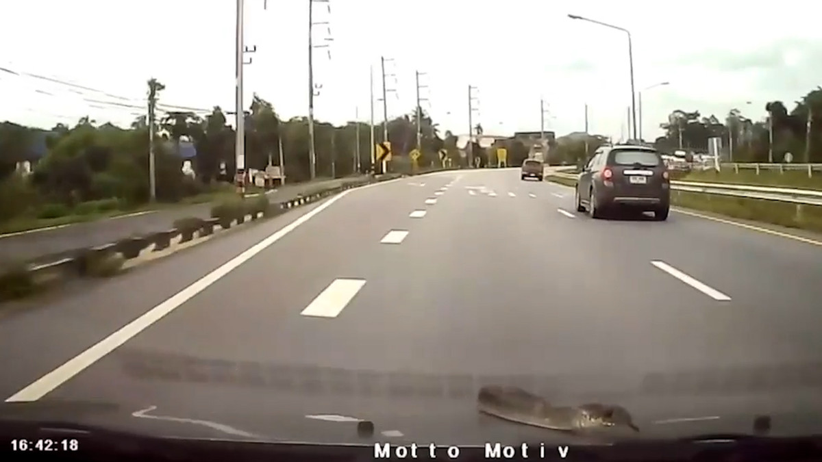 Con rắn trườn qua kính chắn gió xe ô tô khi đang lưu thông trên đường ở Thái Lan, tài xế đã dừng xe để nhờ sự giúp đỡ của lực lượng cứu hộ động vật.