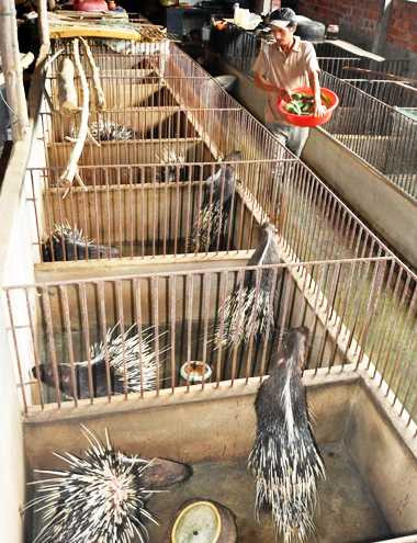 | Anh Tình chăm sóc đàn nhím sinh sản ở trang trại. Ảnh: Trí Tín. |