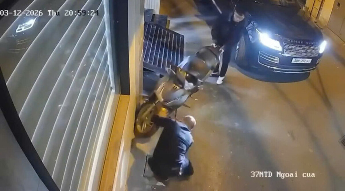 Sau đó, một người đàn ông khoảng ngoài 30 tuổi, mặc quần áo màu đen, từ trên xe ô tô bước xuống, lấy ra một vật nhọn rồi cúi xuống đâm hai lần vào lốp trước và lốp sau của xe máy, làm thủng lốp. Sau khi thực hiện hành vi, người này lên xe ô tô rời khỏi hiện trường.