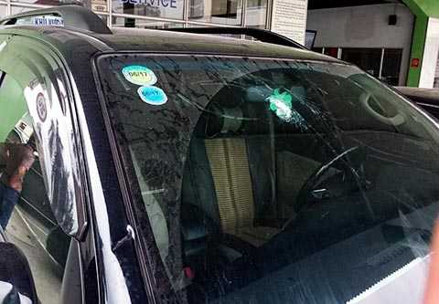 | Chúng đập vỡ gương chiếu hậu, sườn xe, cánh cửa xe cũng bị chúng chém nhiều nhát |