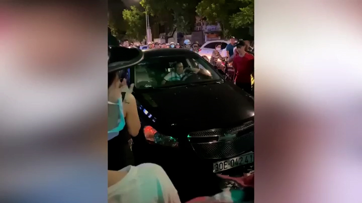 Sau khi gây va chạm với xe máy tại ngã tư Bà Triệu - Nguyễn Du, Hà Nội, nam tài xế cố thủ trên xe, có biểu hiện say rượu và liên tục ngồi trong xe uống nước lọc.