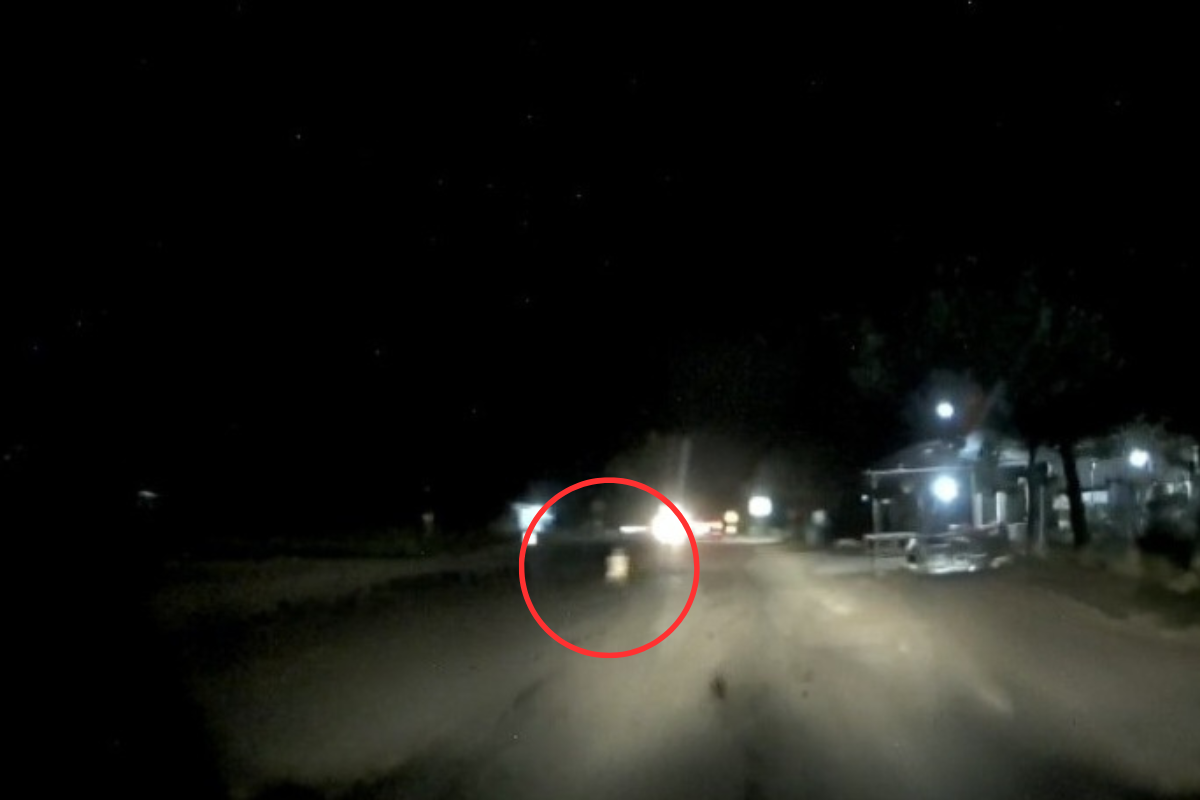 Cháu bé khoảng 2 tuổi chập chững đi ra giữa đường quốc lộ lúc trời đêm tối. (Ảnh cắt từ clip)