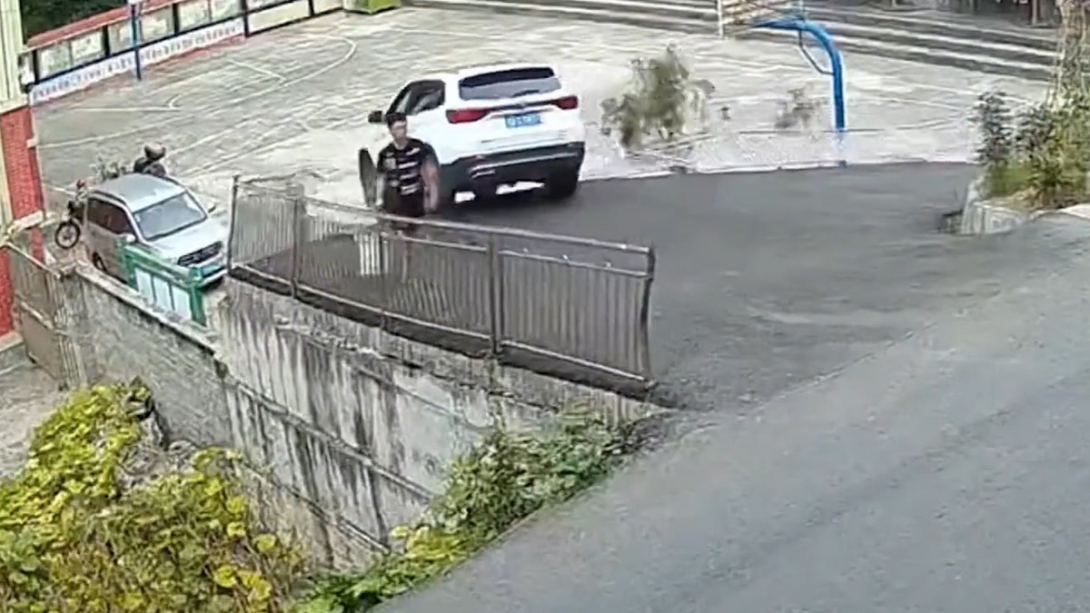 Ô tô đang vào cua, tài xế đạp nhầm chân ga khiến xe tông sập lan can và lao thẳng xuống sân bóng rổ từ độ cao 3m tại TP Yibin (Tứ Xuyên, Trung Quốc).