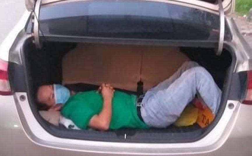 Nam thanh niên trốn trong cốp xe để đi qua chốt phòng dịch.