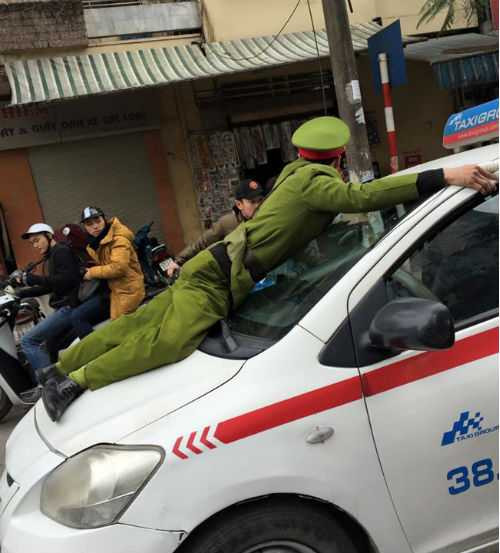 Chiến sỹ cảnh sát bị tài xế taxi hất lên nắp capo là Thiếu úy Phùng Duy Tân – Công an phường Bùi Thị Xuân, quận Hai Bà Trưng, Hà Nội.