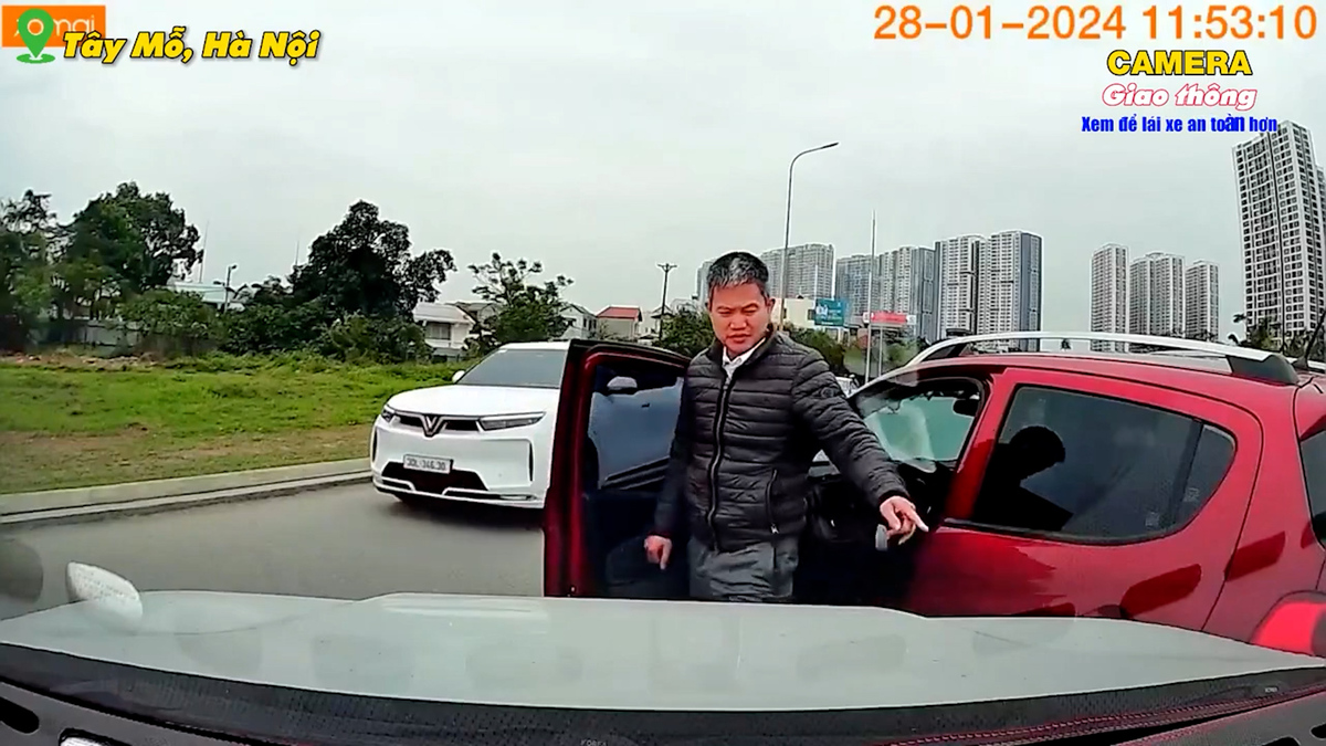 Tài xế ô tô biển số 30H-381.98 bất ngờ chặn đầu xe di chuyển cùng chiều tại phường Tây Mỗ (Hà Nội) vì cho rằng tài xế không nhường đường dẫn tới va chạm giao thông.