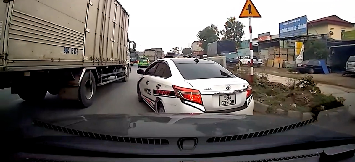 Cho rằng không được nhường đường, tài xế lái ô tô biển số 99A - 639.08 chặn đầu ô tô khác với thái độ thách thức.