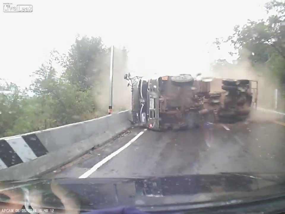 Vụ tai nạn xảy ra vào ngày 6/5 vừa qua tại Thái Lan, chiếc xe tải đang đi đến ngã 3 thì mất lái, lật nghiêng và trượt dài trên đường khiến những người ngồi trên ôtô sợ hãi, la hét ầm ĩ, cho xe đi lùi để tránh chiếc xe tử thần đang chồm đến.