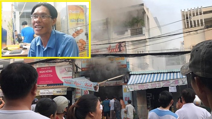 Khi đi đến đường số 17, anh Bình thấy một căn nhà khóa cửa bốc cháy dữ dội, bên ngoài nhiều người đang cố gắng cạy cửa, dập lửa nhưng bất thành.