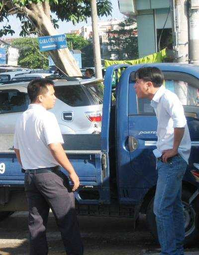 Cuộc 'khẩu chiến' của hai tài xế sau va chạm giao thông gây phản cảm (Ảnh: Phạm Nguyễn)