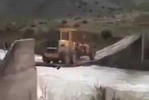 (VTC News) - Cây cầu cực hẹp và mong manh nhưng chiếc xe vẫn qua bờ bên kia an toàn.