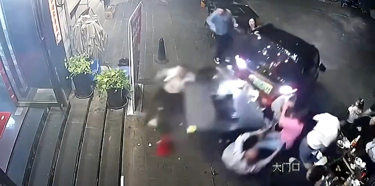 Sự việc được ghi nhận tại Quảng Tây, Trung Quốc, chiếc ô tô đang đi lùi bỗng dưng mất kiểm soát, lùi thẳng vào những người đang ngồi ngoài vỉa hè.