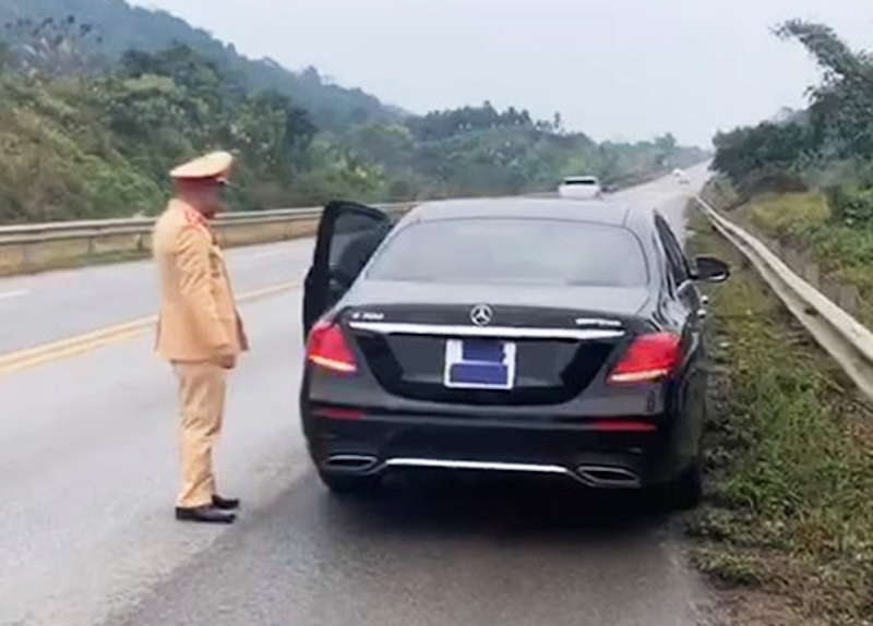 Khoảng 11h cùng ngày, anh M. điều khiển ô tô hiệu Mercedes biển số 51H... di chuyển trên cao tốc Nội Bài - Lào Cai. Khi đến Km117, tài xế sử dụng băng dính màu xanh để che biển số.