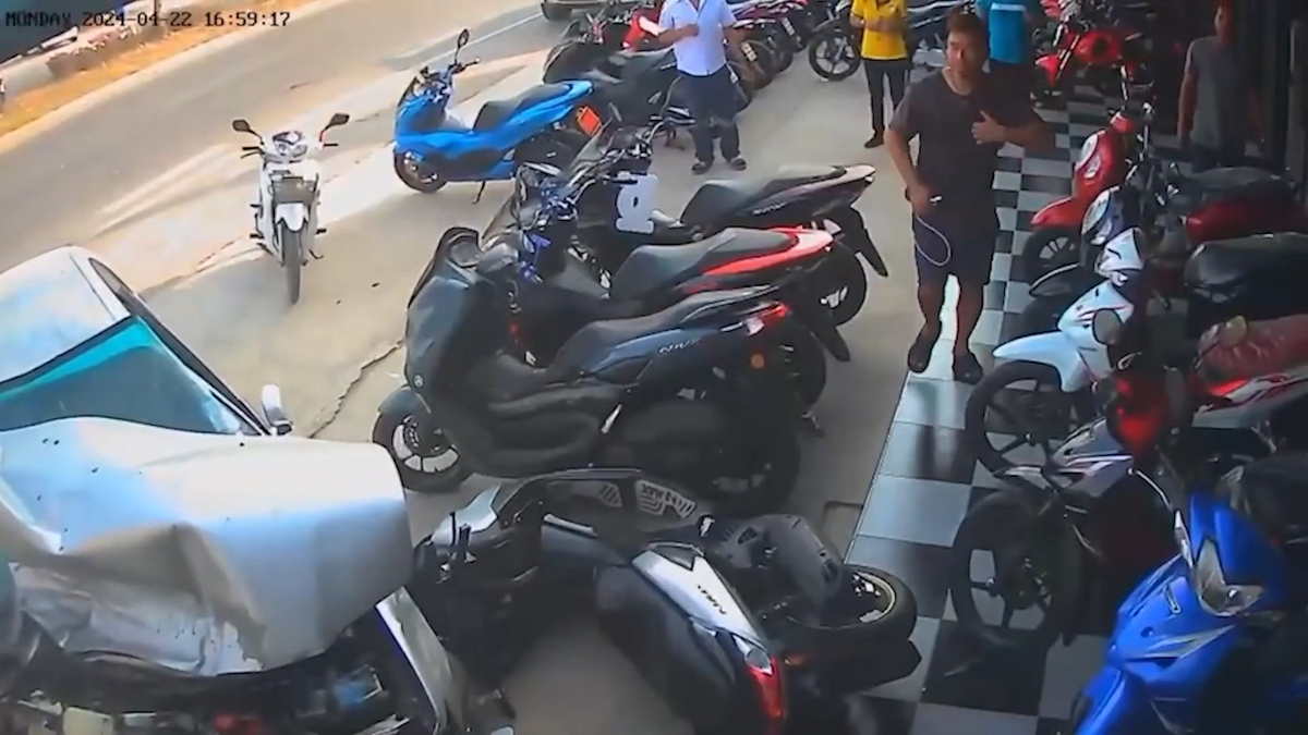 Tài xế lớn tuổi ngất xỉu khi lái xe khiến ô tô tông hàng loạt phương tiện tại Samut Songkhram, Thái Lan.
