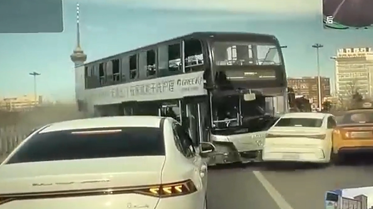 Tài xế ngất xỉu khiến xe buýt lao qua dải phân cách và tông vào các phương tiện đi ngược chiều tại Bắc Kinh, Trung Quốc.