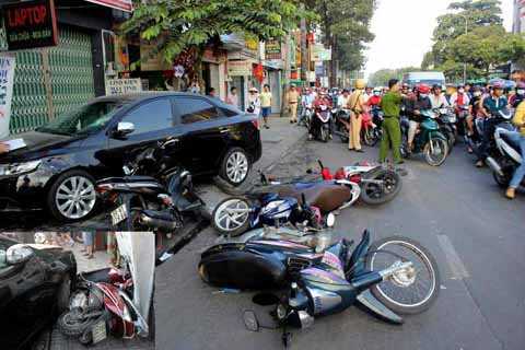 Khi còn cách giao lộ với Nguyễn Oanh khoảng 100 mét thì bất ngờ lao qua phải, tông hàng loạt xe máy đang chạy cùng chiều phía trước.