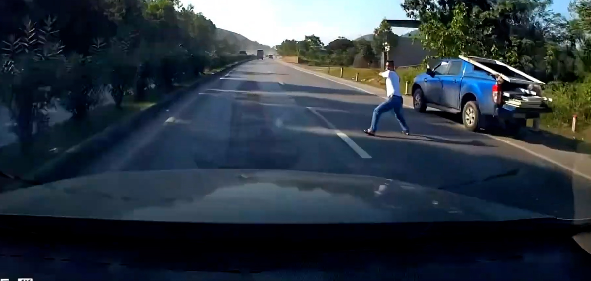 Sự việc xảy ra trên quốc lộ 1A, đoạn qua huyện Nghi Lộc, tỉnh Nghệ An, tài xế điều khiển xe bán tải đã cầm gậy golf lao ra giữa đường để "dằn mặt" tài xế xe khác.