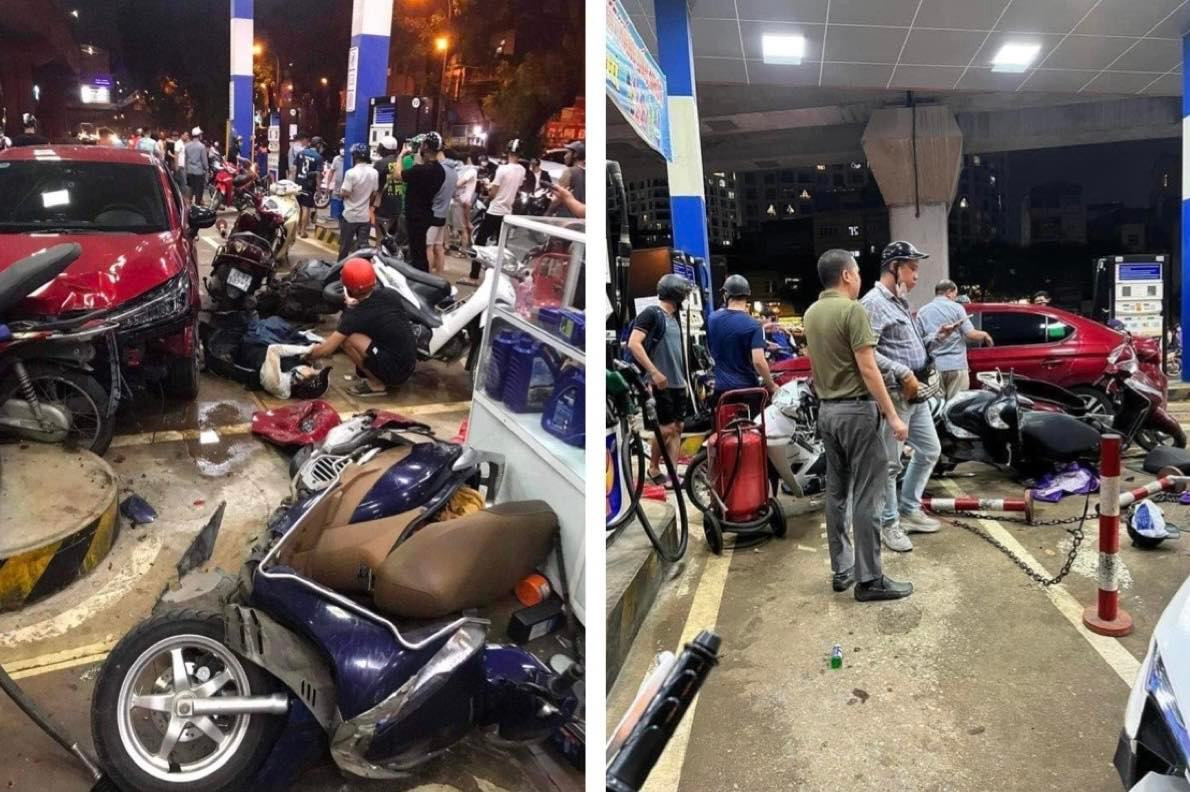 Ngày 13/8, Công an quận Đống Đa (Hà Nội) đang điều tra vụ ô tô tông hàng loạt xe máy tại cây xăng đường Láng (phường Thịnh Quang) khiến 8 người bị thương.