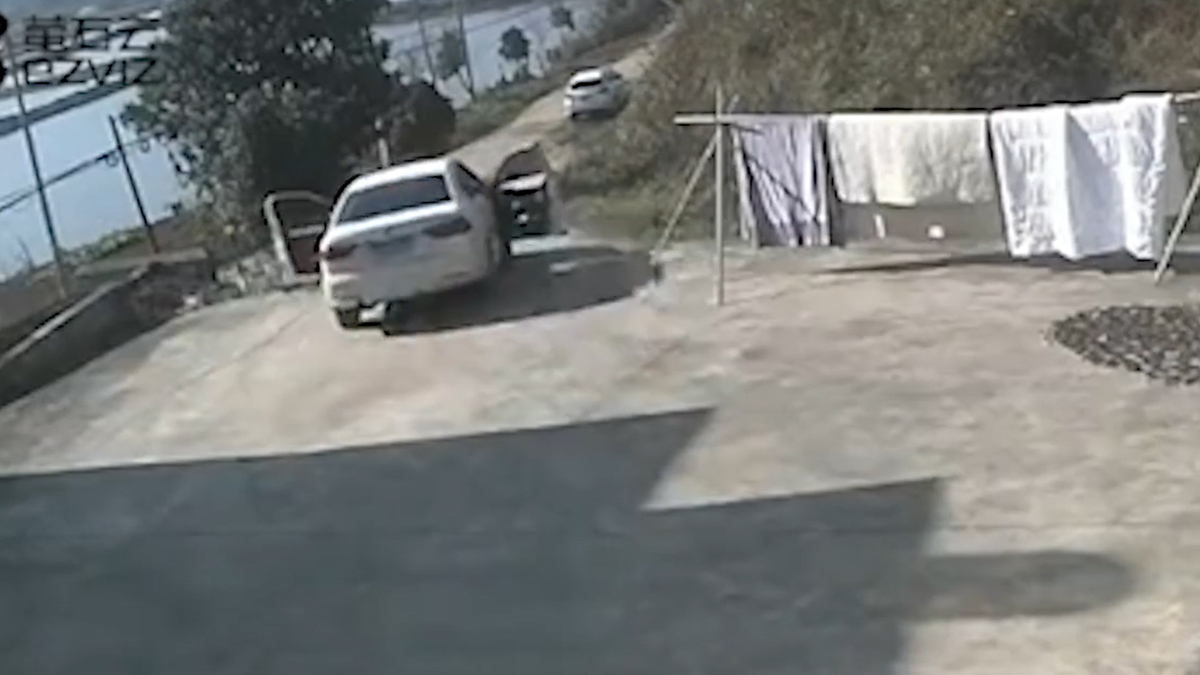 Tài xế xuống xe quên kéo phanh khiến chiếc ô tô tự di chuyển và lao nhanh xuống dốc tông hàng rào tại tỉnh Giang Tây, Trung Quốc.
