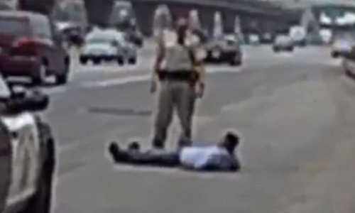 Sau khi bị cảnh sát bắt dừng xe, kiểm tra giấy tờ, tài xế say rượu đã giở trò ăn vạ, nằm lăn ra đường không chịu đứng dậy.