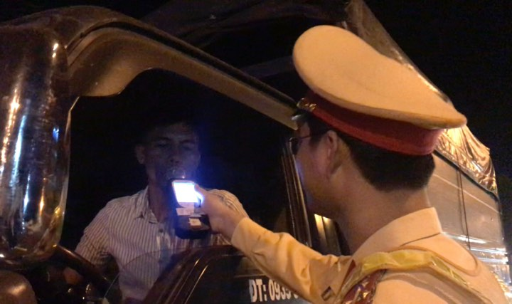 Lực lượng CSGT kiểm tra nồng độ cồn các tài xế