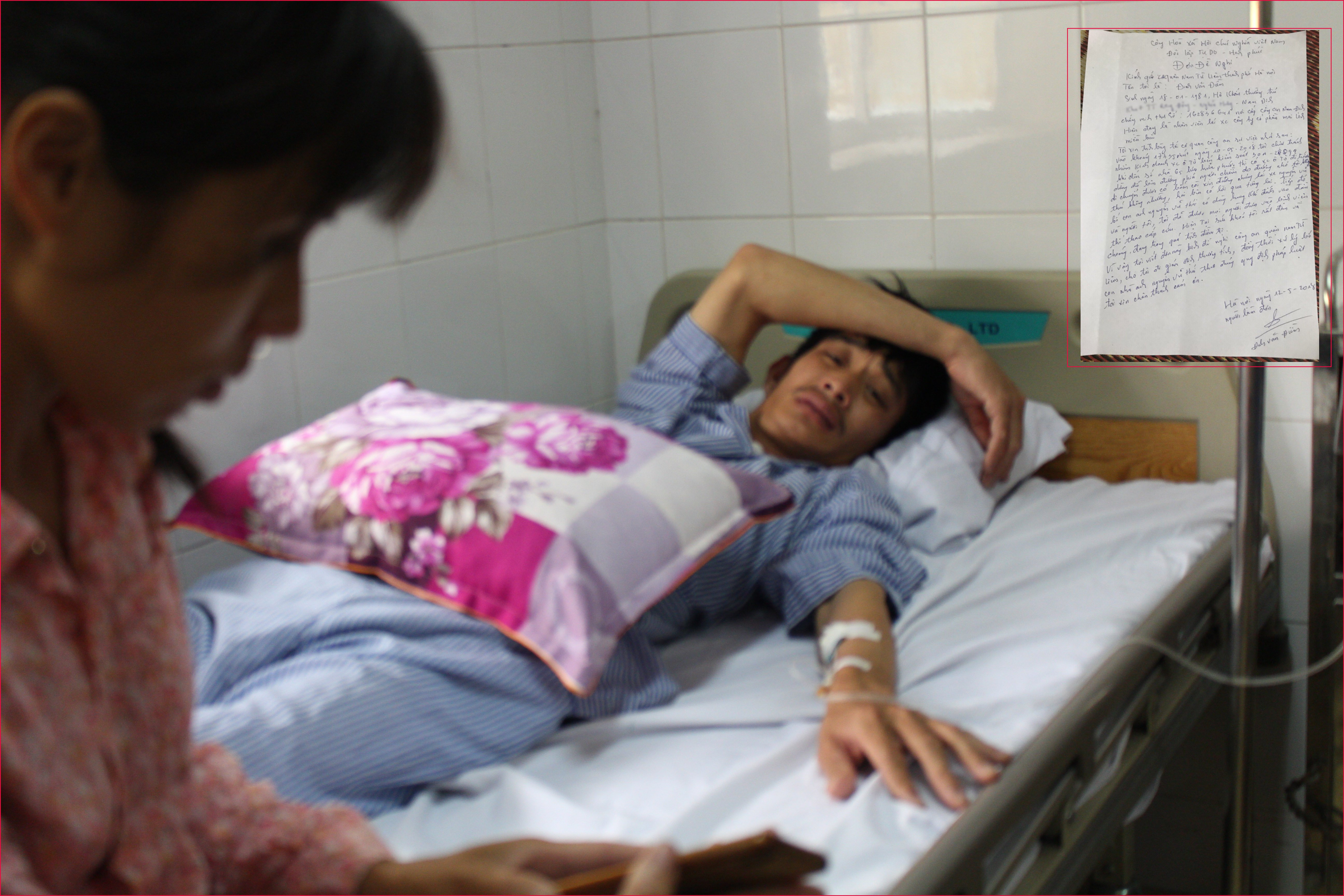 Chủ tịch công đoàn công ty Mai Linh Miền Bắc và tổng giám đốc công ty bảo hiểm Manulife đến thăm và hỗ trợ vật chất cho anh Đinh Văn Điềm vào ngày 24/5, khi anh Điềm chuyển từ viện Việt Đức về nhà trọ.