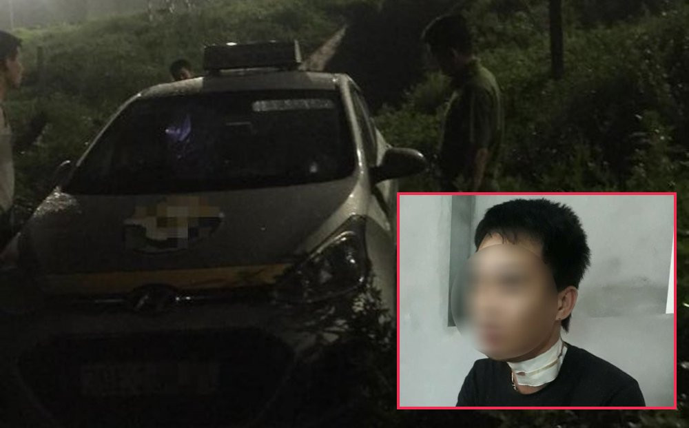 Lúc này một thanh niên ngồi ghế ngay phía sau ghế lái rút con dao bấm cứa cổ anh T. Bị tấn công, anh T. phản xạ chống trả, chui ra khỏi kính xe cầu cứu.