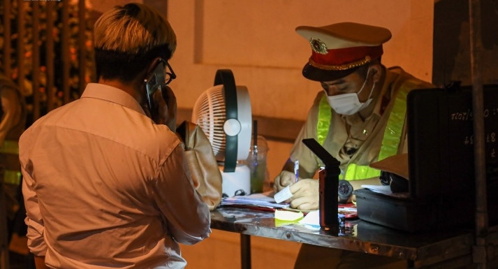 Ít phút sau tài xế Nguyễn Quốc K. điều khiển xe máy BKS 29P1-358XX bị phát hiện vi phạm nồng độ cồn ở mức 0,236 mg/l khí thở. Với lỗi vi phạm trên tài xế K. bị lực lượng chức năng lập biên bản xử phạt 2 đến 3 triệu đồng, tạm giữ phương tiện trong vòng 7 ngày.