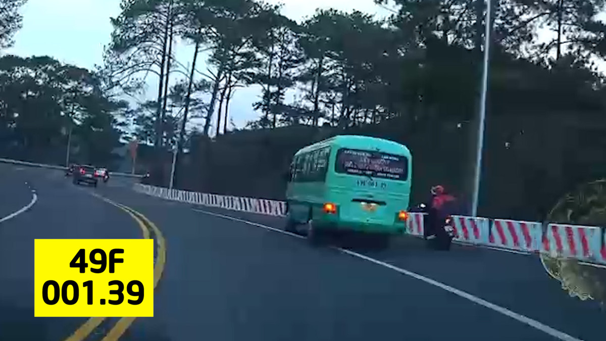 Ngày 28/4, tài xế xe buýt biển số 49F-001.39 chạy tuyến Đà Lạt – Đức Trọng, từ phía sau lao lên chèn ép hai người đi xe máy khiến nhiều người bức xúc.