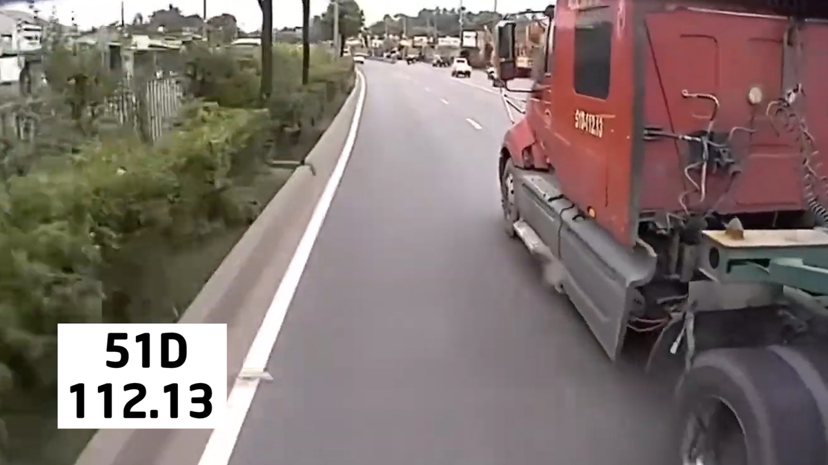 Tài xế xe đầu kéo 51D-112.13 giở thói côn đồ lạng lách, chèn ép xe cùng chiều