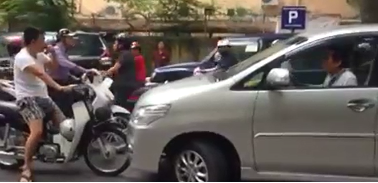 Ngay sau đó chiếc xe này bị một người đàn ông điều khiển xe máy chạy ngược chiều chặn đầu, yêu cầu xuống xe xin lỗi mới cho di chuyển tiếp. Clip ngay sau khi xuất hiện trên các trang mang xã hội đã thu hút sự chú ý của hàng ngàn người.