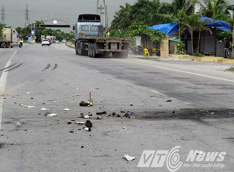 Cú va chạm mạnh khiến chiếc xe máy bốc cháy dữ dội, ít phút sau đã cháy chơ khung sắt. Lái xe máy ngã văng xuống đường và tử vong tại chỗ.