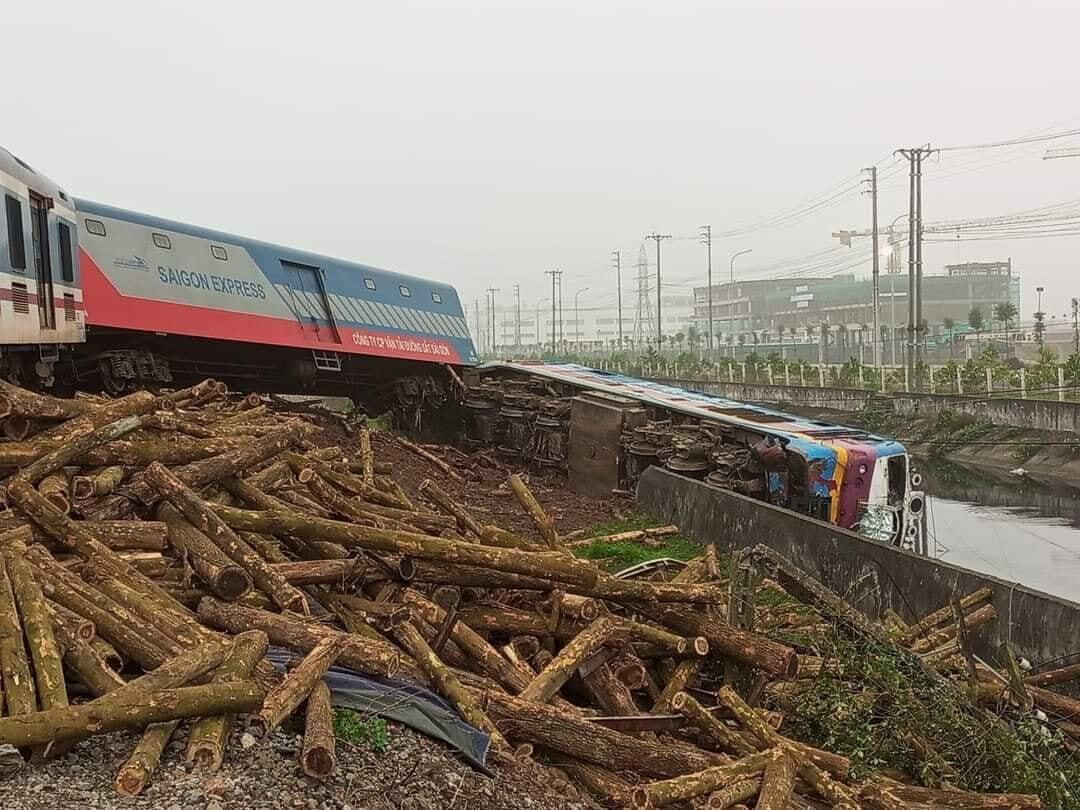 "May mắn vụ việc không gây thiệt hại về người, chỉ có đầu máy tàu bị đổ cùng với 2 toa xe là toa phát điện và 1 toa bưu vụ", đại diện Tổng công ty Đường sắt Việt Nam nói.