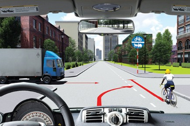 Tăng tốc độ, rẽ phải trước xe đạp