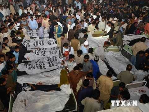 | Thi thể các nạn nhân vụ đánh bom tại một bệnh viện gần cửa khẩu Wagah ngày 2/11. (Nguồn: AFP/TTXVN) |