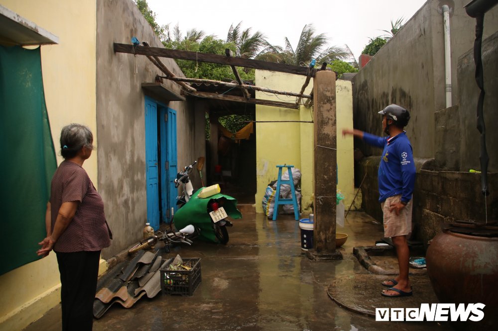 Nhà Bà Tư, thôn Triều Dương, Tam Thanh (Phú Quý) vừa bị tốc mái hiên sau trận mưa lớn tối qua. Bà Tư cho hay, cả đêm hôm qua nhà bà không ai ngủ được, đến gần 4h sáng thì gió mạnh, nghe tiếng "rầm" lớn kèm theo tiếng vỡ vụn, bà chạy ra thì thấy toàn bộ tôn của mái hiên đều bị lật và rơi xuống đất.