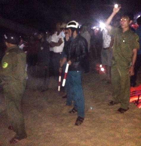 Lực lượng cứu hộ cứu nạn tổ chức tìm kiếm nạn nhân trong đêm.